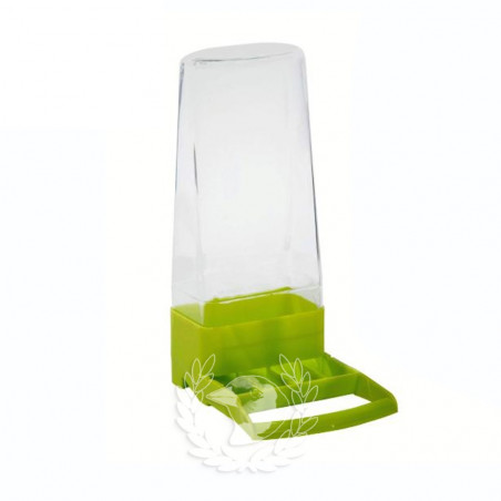 Fabricado en plástico, para jaulas o voladeras con los barrotes en horizontal. Diseño de gran utilidad tanto en el día a día como cuando el propietario deba ausentarse del hogar, ya que dispone de un contenedor que ofrece el alimento de forma gradual. Se puede utilizar con Semillas / Pienso o con agua, fácil de limpiar.