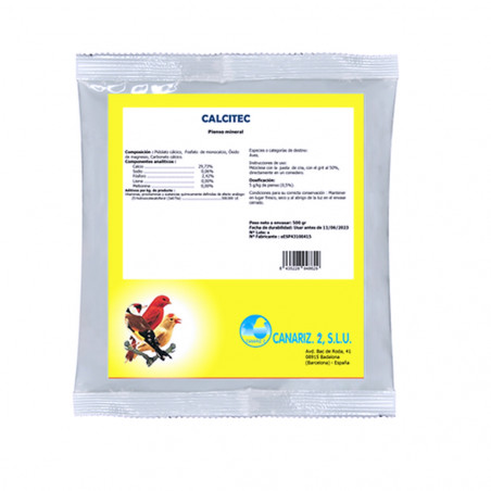 Calcitec polvo es un pienso mineral que aporta el refuerzo necesario de todas las parte cartilaginosas, plumas, huesos, pico… Ayuda a conseguir una mejor salud y digestión del ave, gracias a su diseño técnico.