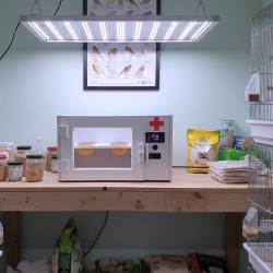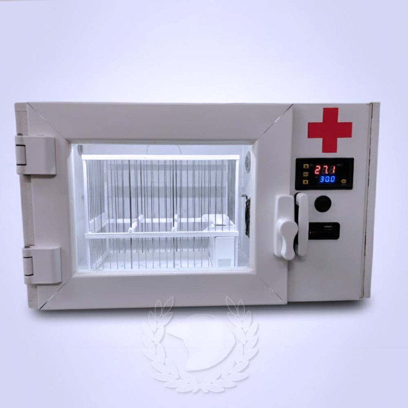 La jaula enfermería artesanal está diseñada para alojar una jaula tipo C2 o cualquier jaula con medidas similares. Es una solución multifuncional ideal para el cuidado y manejo de aves: jaula enfermería para pájaros enfermos o delicados, calienta-nidos, cajón educador gracias al altavoz incorporado y jaula de sacado para después del baño durante la preparación previa a concursos.